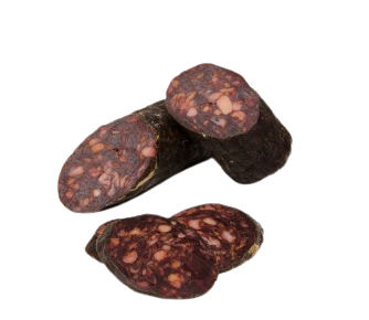 Ingredientes: Magro y panceta de cerdo ibérico, pimentón, ajo, sal, azúcares, (lactosa) dextrina, especias, estabilizante E-450i, E-451i, antioxidante E-316, conservadores E-250 y E-252, y colorante E-120.